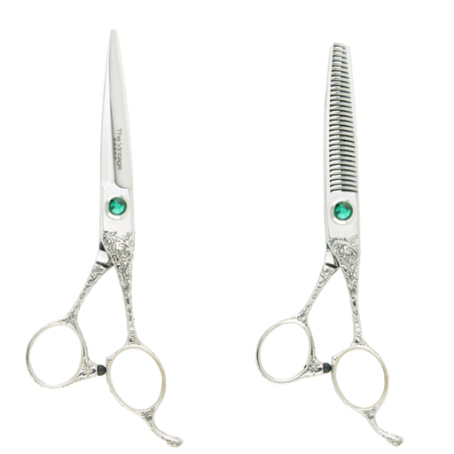 Hand created using 440C steel from Japan, the Matakki Dragon hair thinning/blending scissors are stylishly created with a hand cut mythical dragon ...